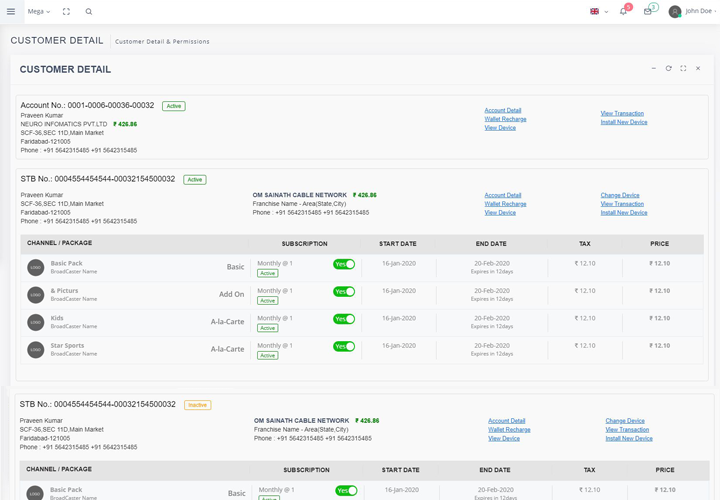 Neuro SMS (Subscriber Management System) is an integrated, powerful, comprehensive & versatile web based Management & Billing Solution to manage subscribers, contracts, products/packages, distributors, billing, revenues, inventory and provisioning.